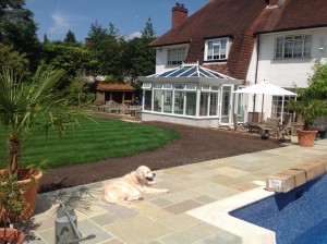 Hand cut Indian sandstone patio, slabs, pool surround